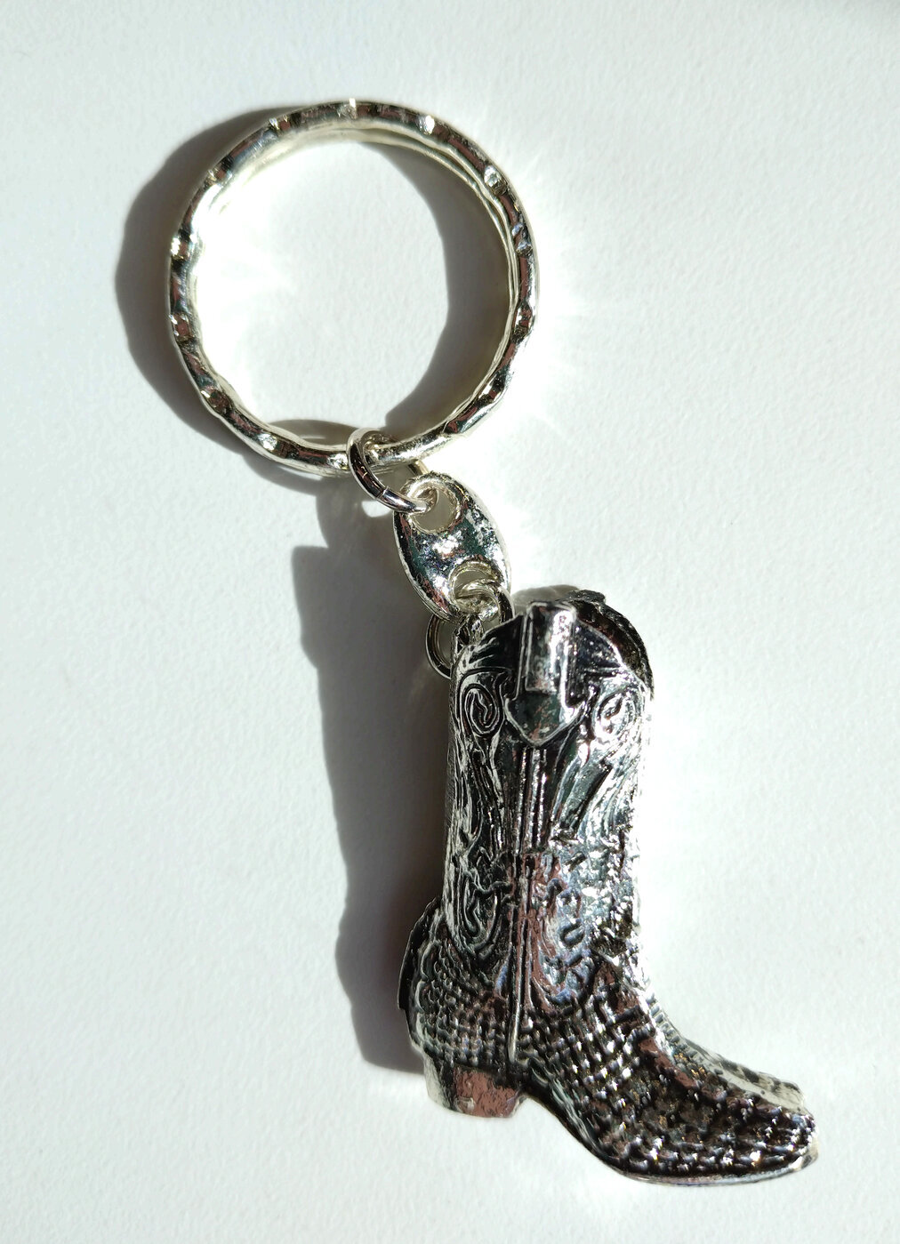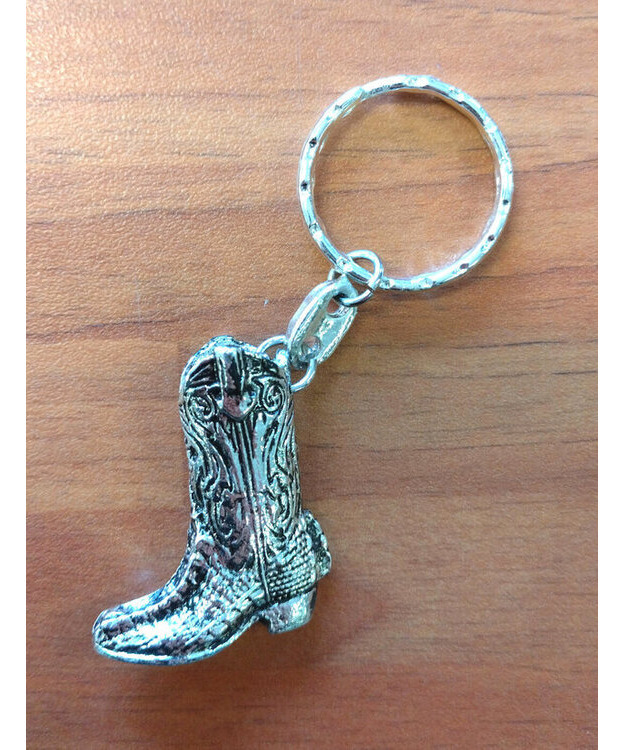 Metallinen bootsin muotoinen avaimenperä koristekaiverruksilla.