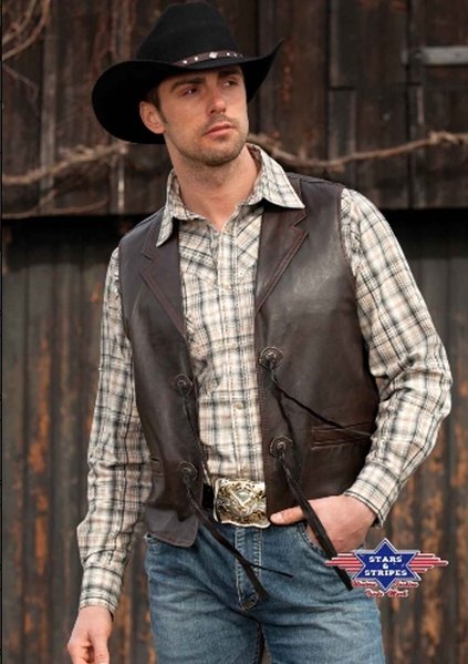 Vintage-tyylinen miesten nahkaliivi. Materiaali: pehmeä lampaan nappanahkaVäri: tummanruskeaKaksi etutaskua, ja povitasku.