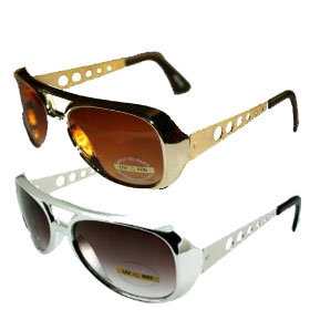 Elvis tyyliset aurinkolasit. Saatavana hopean- ja kullanvärisillä kehyksillä.Sankojen ja kehysten materiaali muovia.