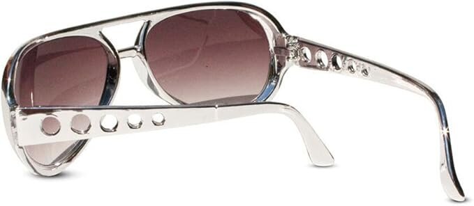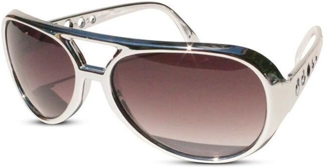 Elvis tyyliset aurinkolasit. Saatavana hopean- ja kullanvärisillä kehyksillä.Sankojen ja kehysten materiaali muovia.