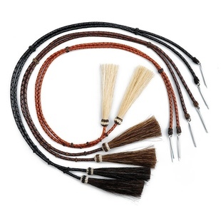 Aitoa nahkaa punottuna ja nyörin päässä hevosen jouhitupsu.