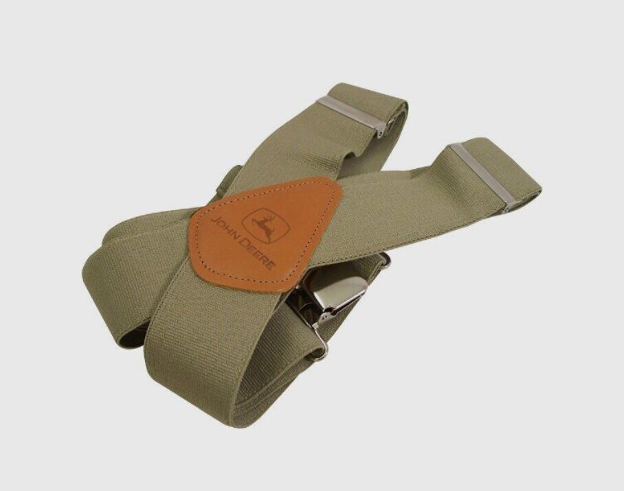 Joustavat John Deere -henkselit. Logo nahkapohjalla.Saatavana musta, vihreä ja khaki.