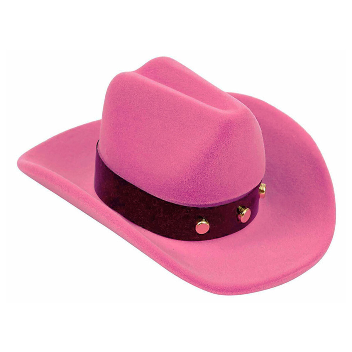Kirkkaan pinkinväriset, nikkelivapaat hevosenkenkä-korvakorut, hatun-mallisessa korurasiassa. Rasioiden värit vaihtelevat.