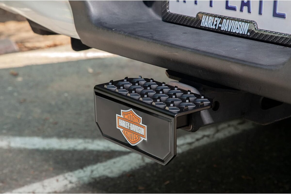 Vetokoukun peitelevy jossa myös astinlauta, amerikkalaiseen vetorautaan, jossa kantikas kiinnityspiste. Universaali sovite, sopii 2" ja 1 1/4".