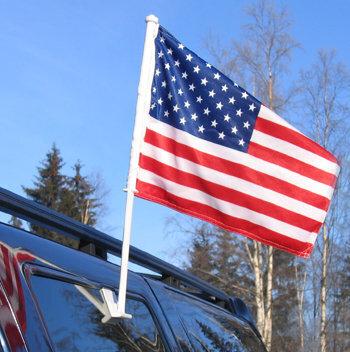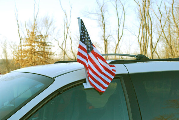 Auton ikkunan yläreunaan kiinnitettävä USA-lippu.