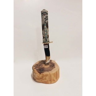 Navajo-intiaanien valmistama puukko ja jalusta.