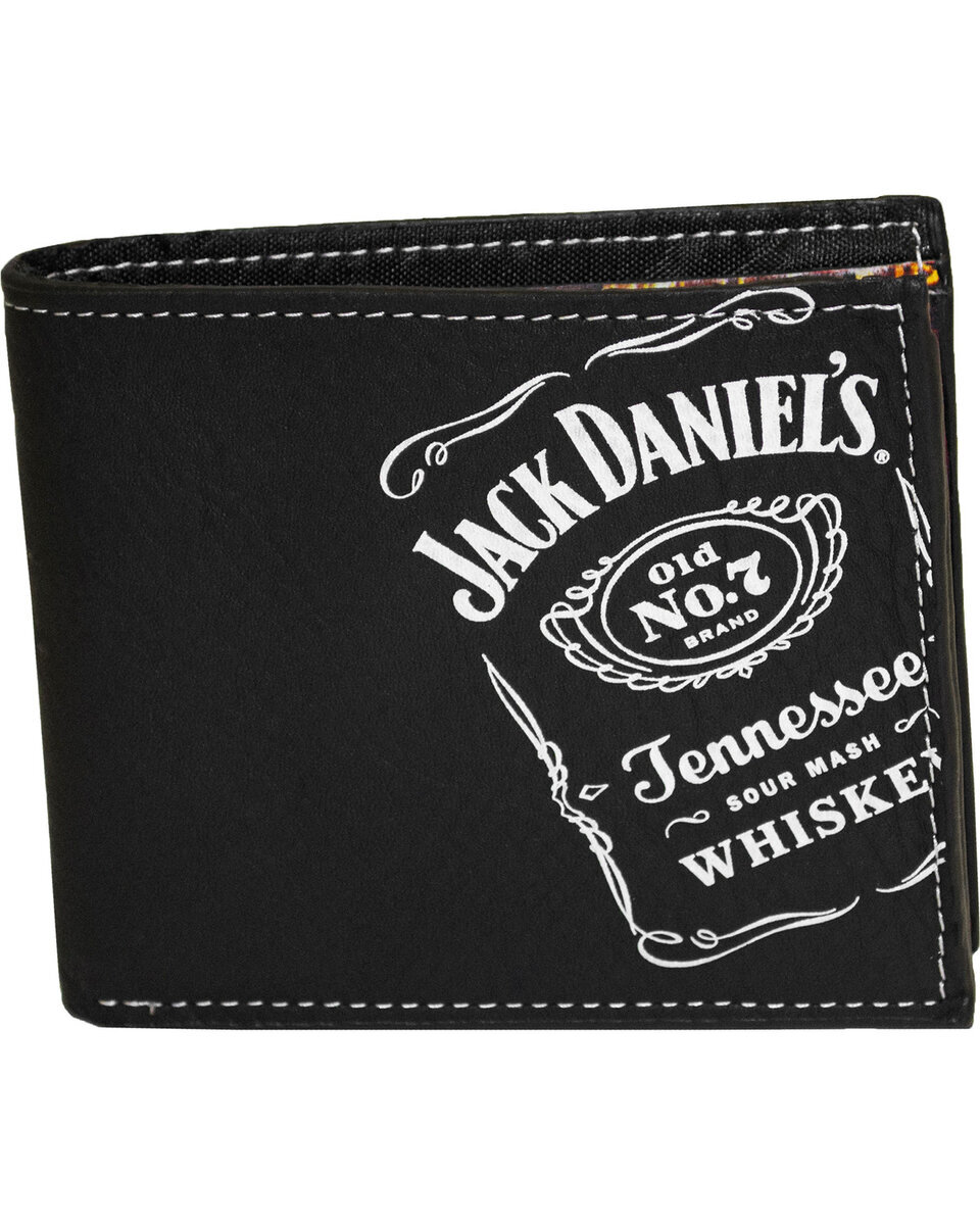 Musta Jack Daniels -lompakko. Materiaali: Aitoa nahkaa.Koko suljettuna: 11 x 9 cmLeveys avattuna: 22 cm
