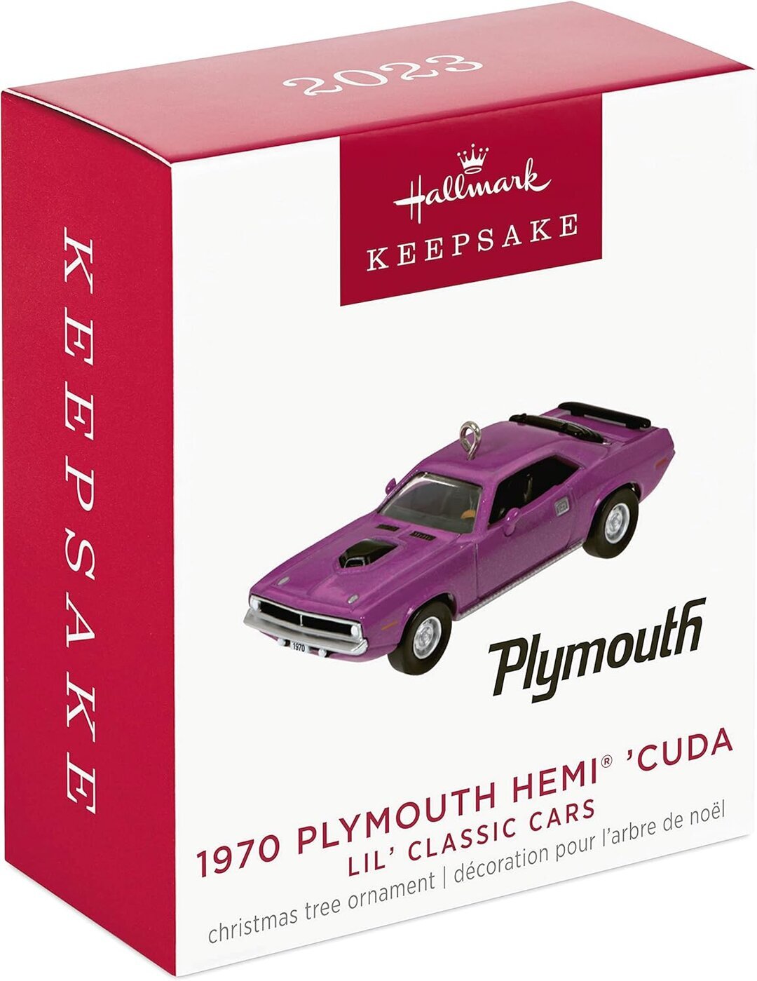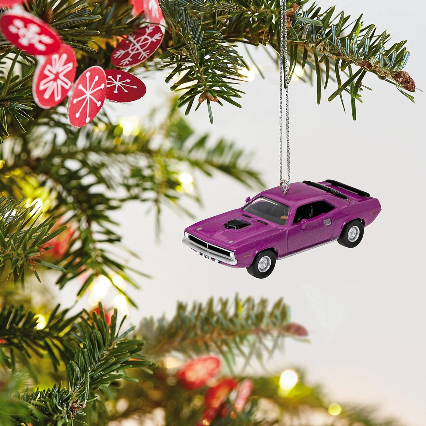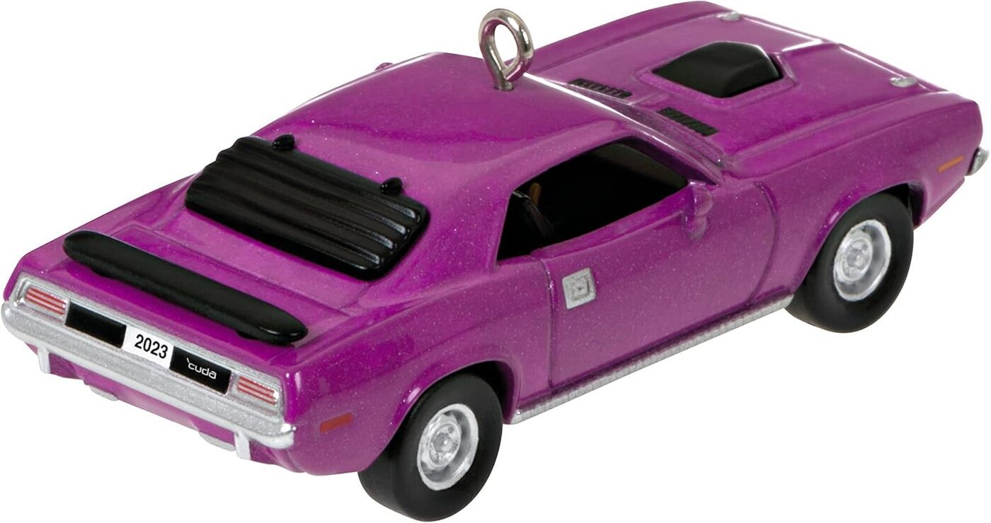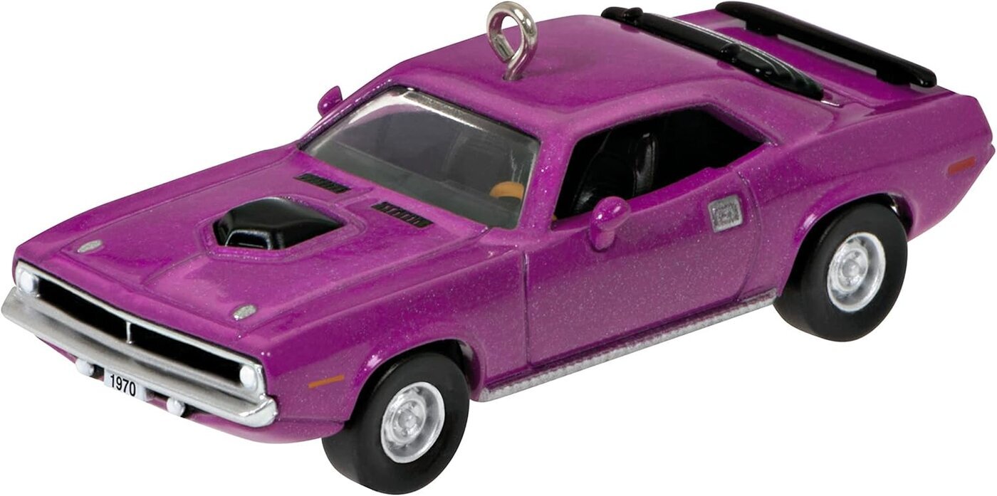 Hallmark -joulukuusenkoriste, pienoismalli 1970 Plymouth HEMI Barracuda -autosta.