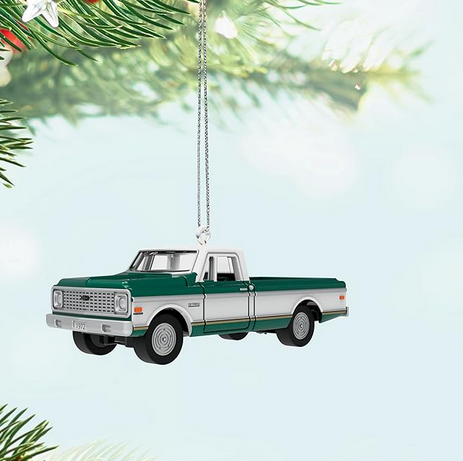 Hallmark -joulukuusenkoriste, pienoismalli 1972 Chevrolet Cheyenne Super -autosta.