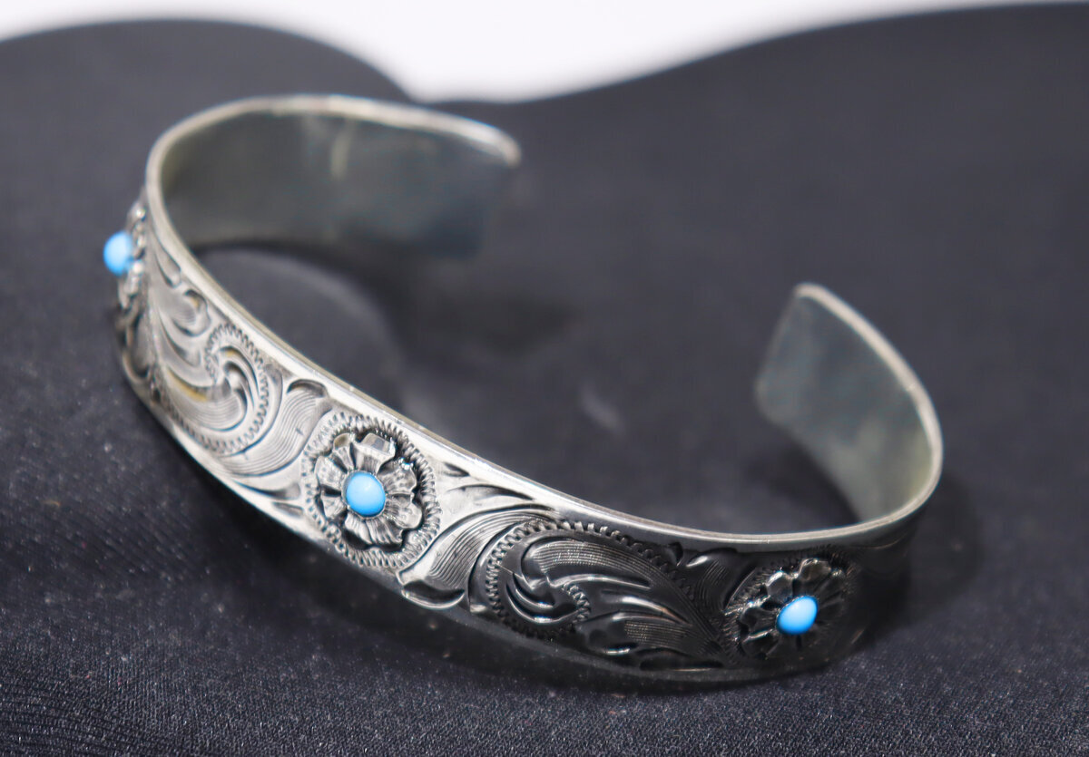 Rannerengas turkoosin värisillä kivillä