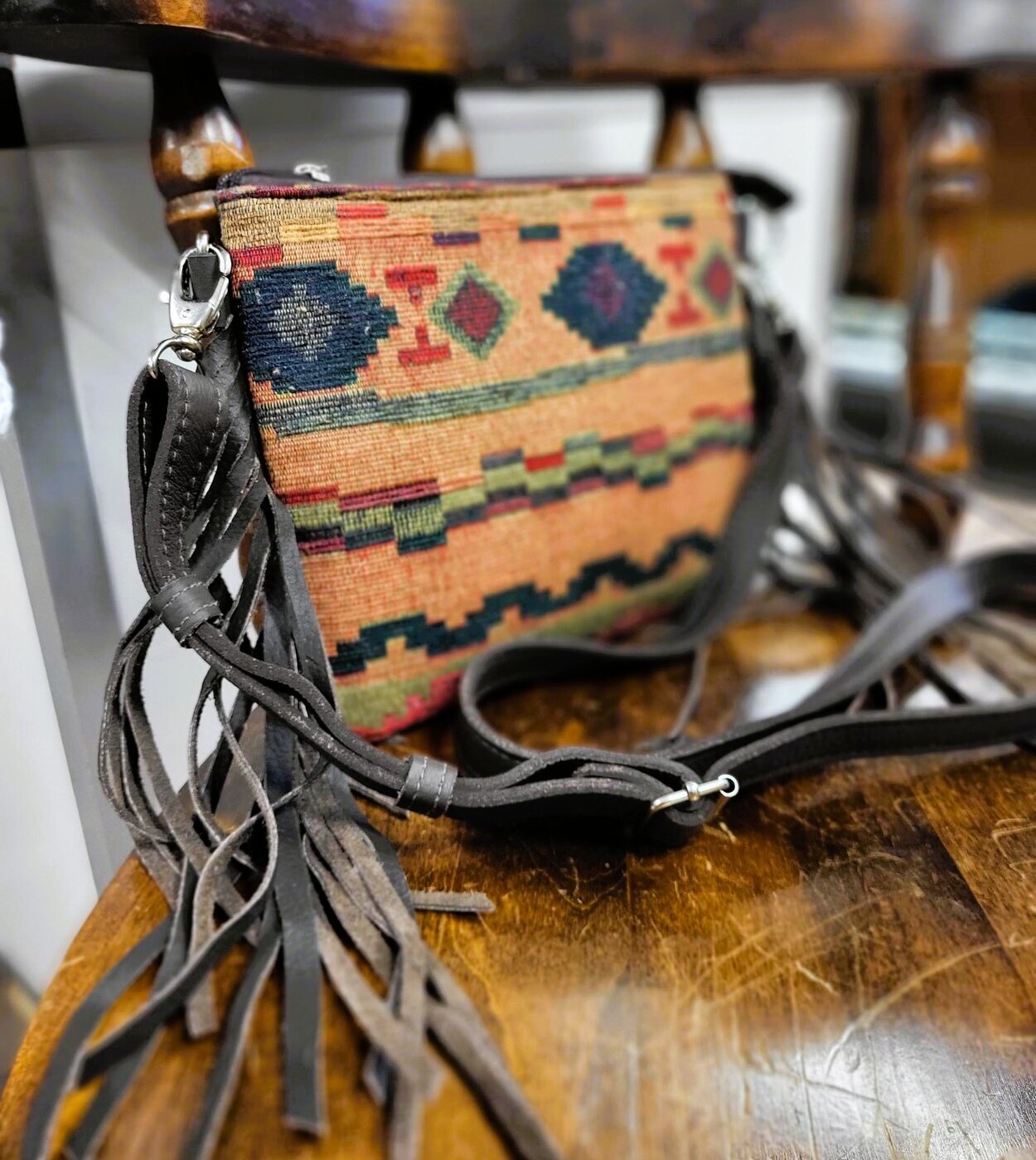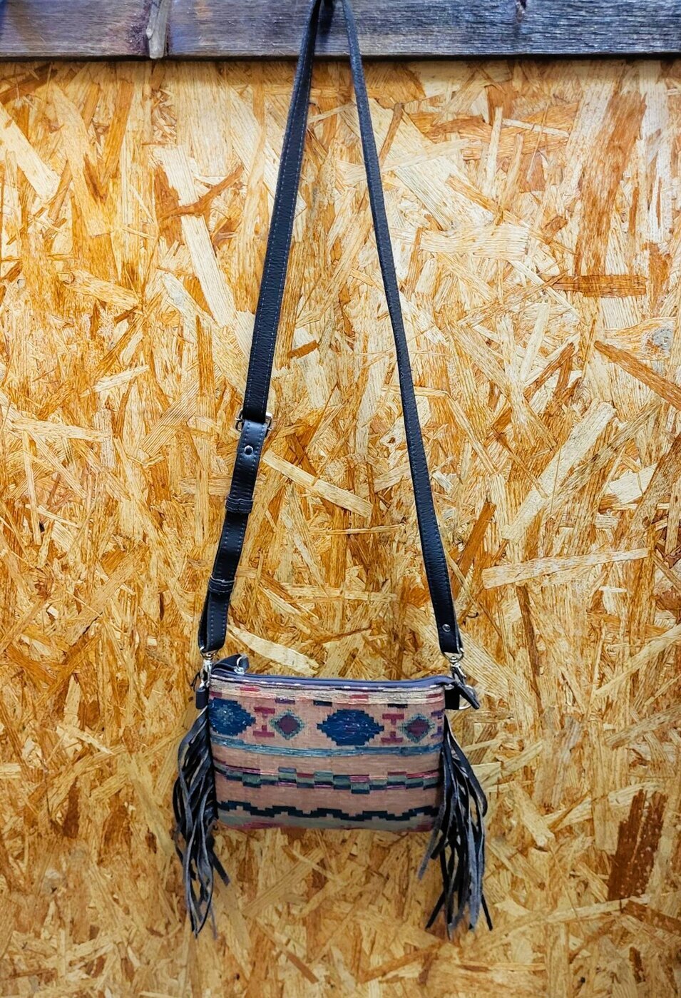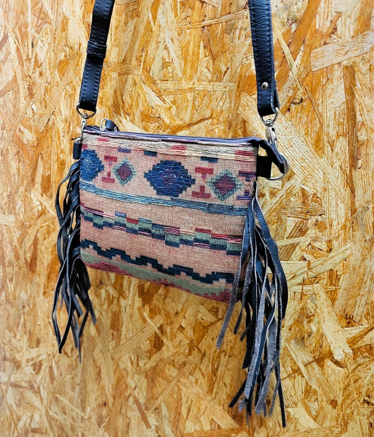 Käsilaukku Southwestern-kuvioilla ja hapsuilla