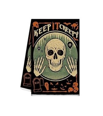 Halloween-aiheinen mikrokuituinen keittiöpyyhe.