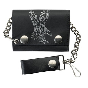 Musta ketjulompakko. Kaksi kokovaihtoehtoa: 11 x 8 cm (kuvassa) ja 16 x 9 cm.