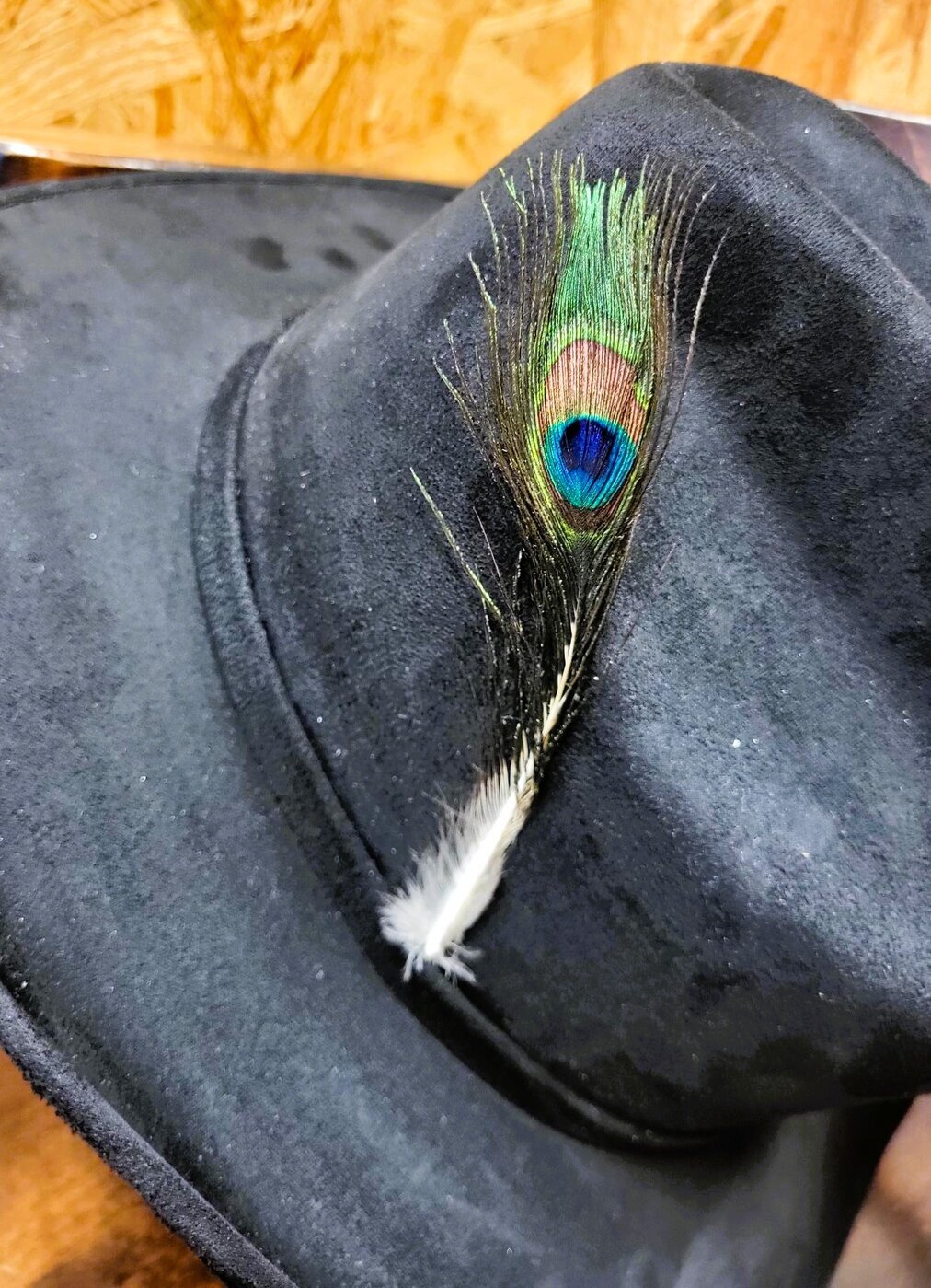 Yksittäinen, aito, Riikinkukon sulka, koristeeksi esim. hattuun.