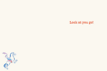 Taitettu kortti, jonka sisäpuolella teksti Look at you go!