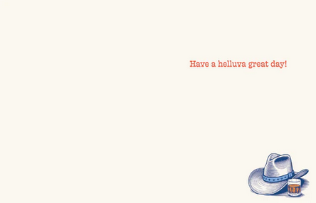 Taitettu kortti, jonka sisäpuolella teksti Have a helluva great day!