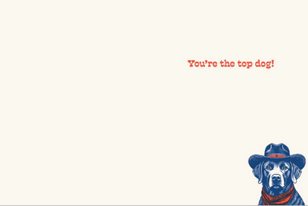 Taitettu kortti, jonka sisäpuolella teksti You're the top dog!