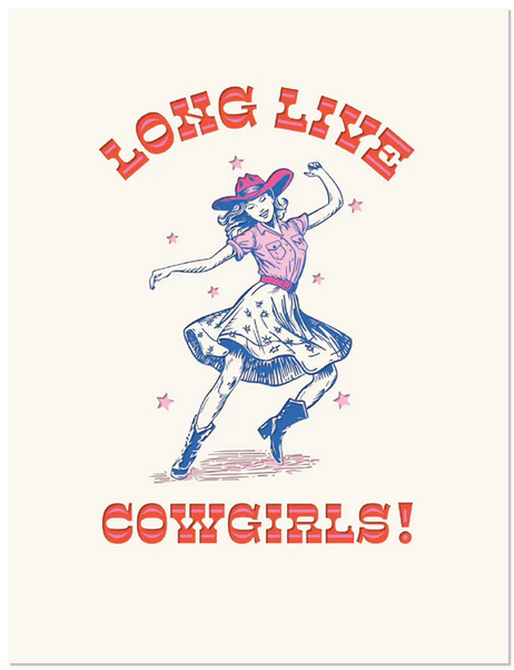 Juhlista erityistä tilannetta ihastuttavalla Long Live Cowgirls! onnittelukortilla. Tämä kortti tuo varmasti hymyn huulille!