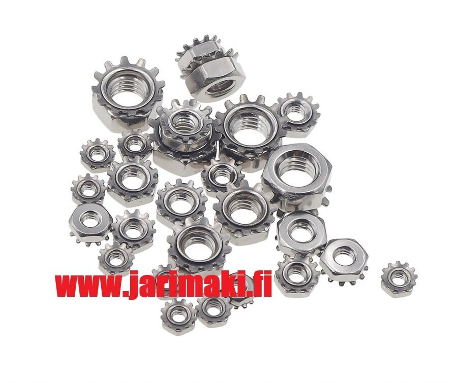 Tyyppi:K-LOCK mutteri,sisältää kiinteän vapaasti pyörivän tähtimäisen lukkoaluslevyn.