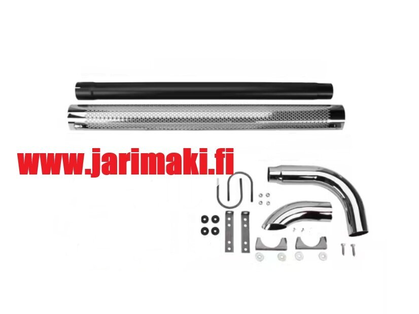 -Krominen 2-1/2" sisäänmeno putki ja 3" ulkohalkaisijaltaan oleva krominen pakoputki.
