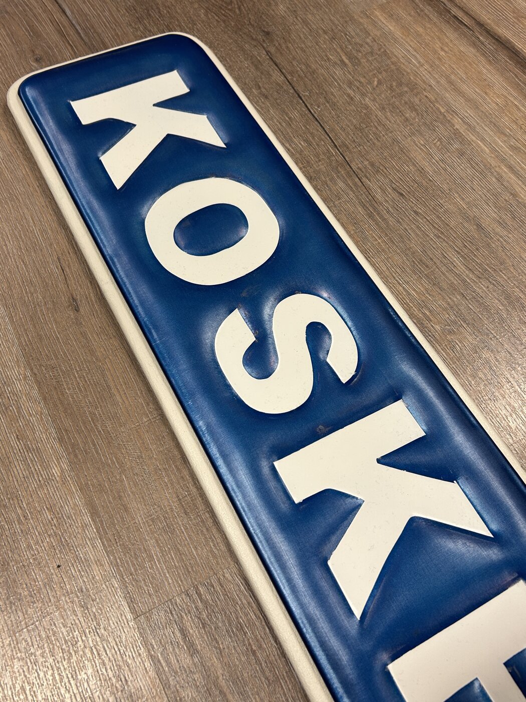Suomessa käsin tehty tyylikäs Koskenkorva kyltti.