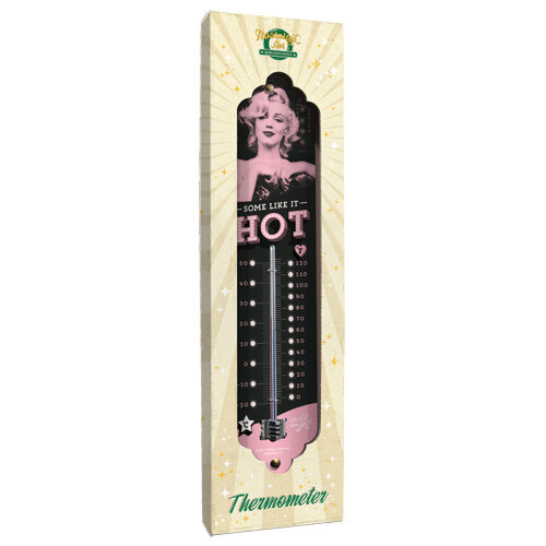 Marilyn Monroe - Some like it hot -lämpömittari, vahvaa teräspeltiä.Celsius ja Fahrenheit-asteikot.Pakattu lahjapakkaukseen.