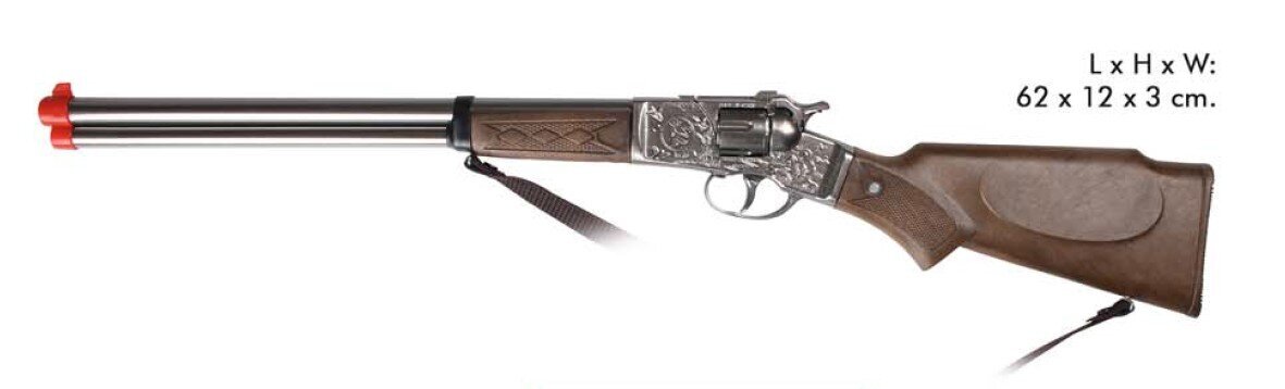 Saatavilla kahdessa eri värissä. Toisessa metalliosat metallin väriset ja toisessa metalliosat mustat.Kiväärin kokonaispituus 62 cm.