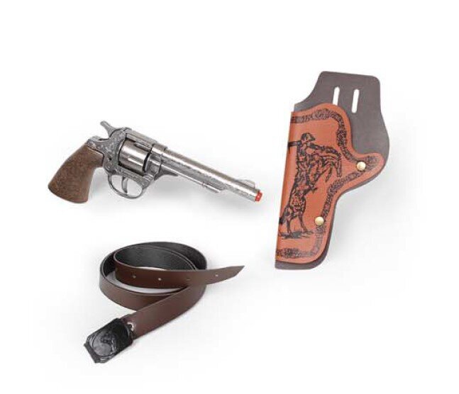 Lasten nallipyssysetti jossa pistooli mallinen nallipyssy, vyö ja holsteri.