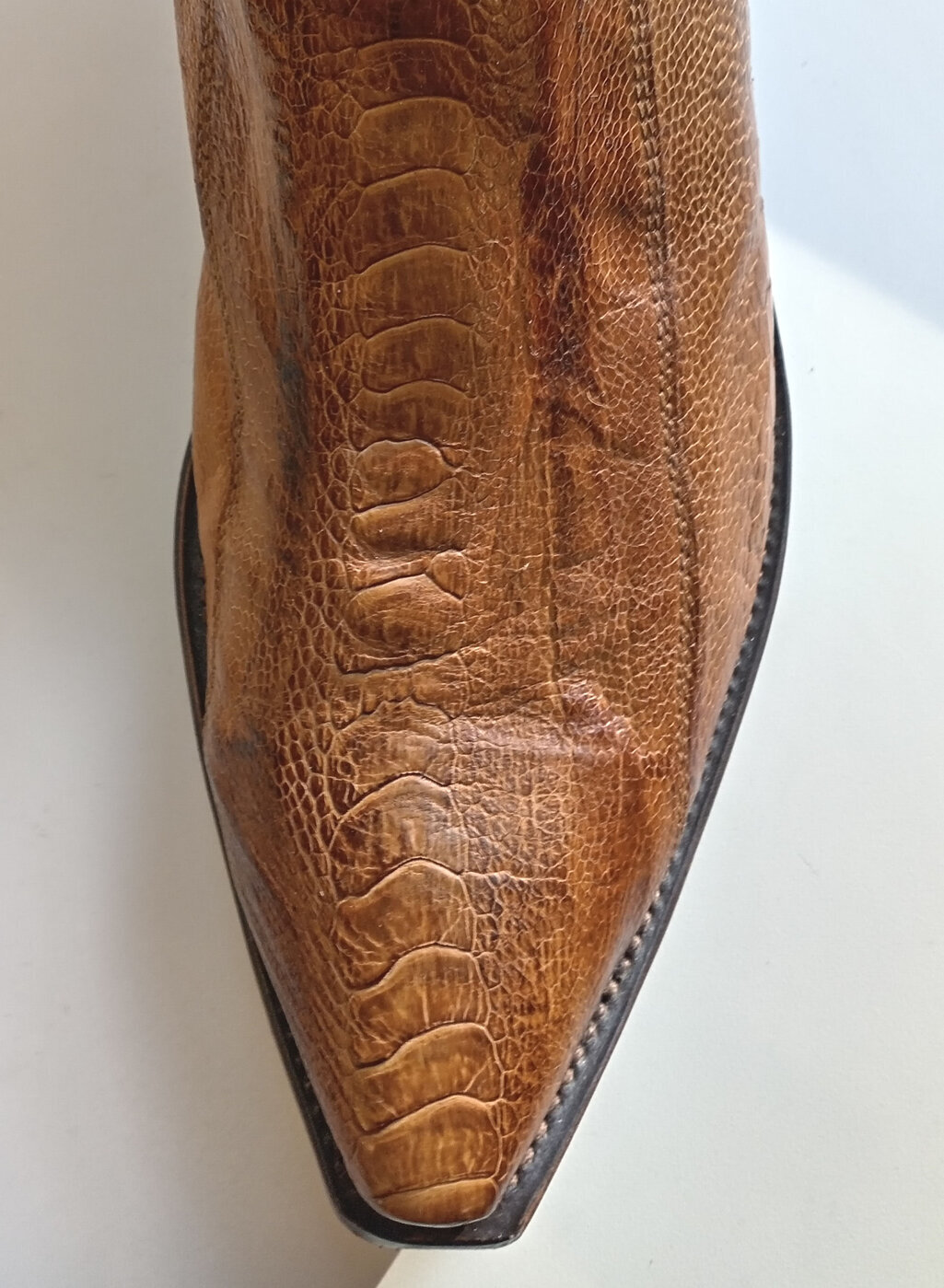 - Jalkateräosuuden päällinen strutsin jalkanahkaa.