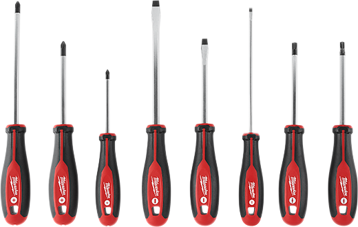 Milwaukee 8-osainen ruuvimeisselisarja tarjoaa ammattitason ratkaisuja ja kestävyyttä.