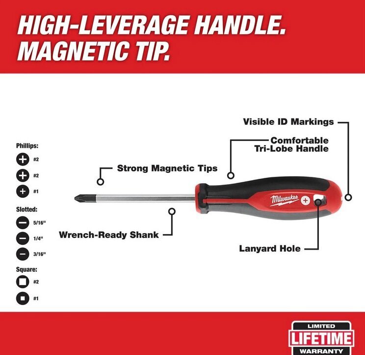 Milwaukee 8-osainen ruuvimeisselisarja tarjoaa ammattitason ratkaisuja ja kestävyyttä.