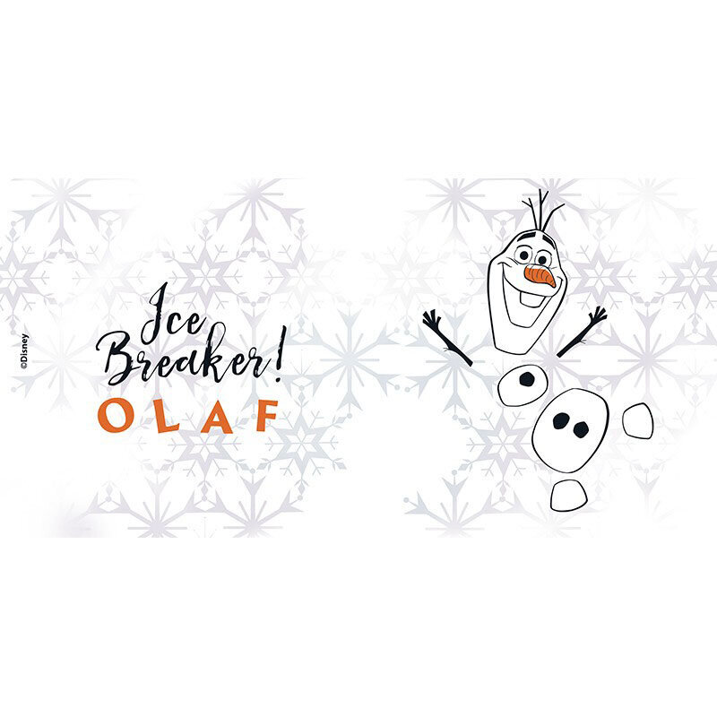 Olaf -muki. Molemmilla puolilla erilainen kuva.