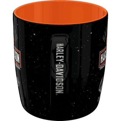 Tukeva keraaminen muki Harley Davidson -logolla.