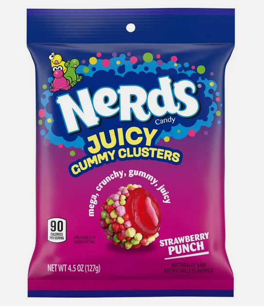 Nerds Juicy Gummy Clusters yhdistää gummy‑karkin ja ikoniset, rouskuvat Nerds‑rakeet yhdeksi vastustamattomaksi makupommiksi. Jokainen suupala on värikäs, hedelmäinen ja juuri sopivan kirpeä — täydellinen naposteltava, kun kaipaat jotain hauskaa, erilaista ja koukuttavan hyvää.