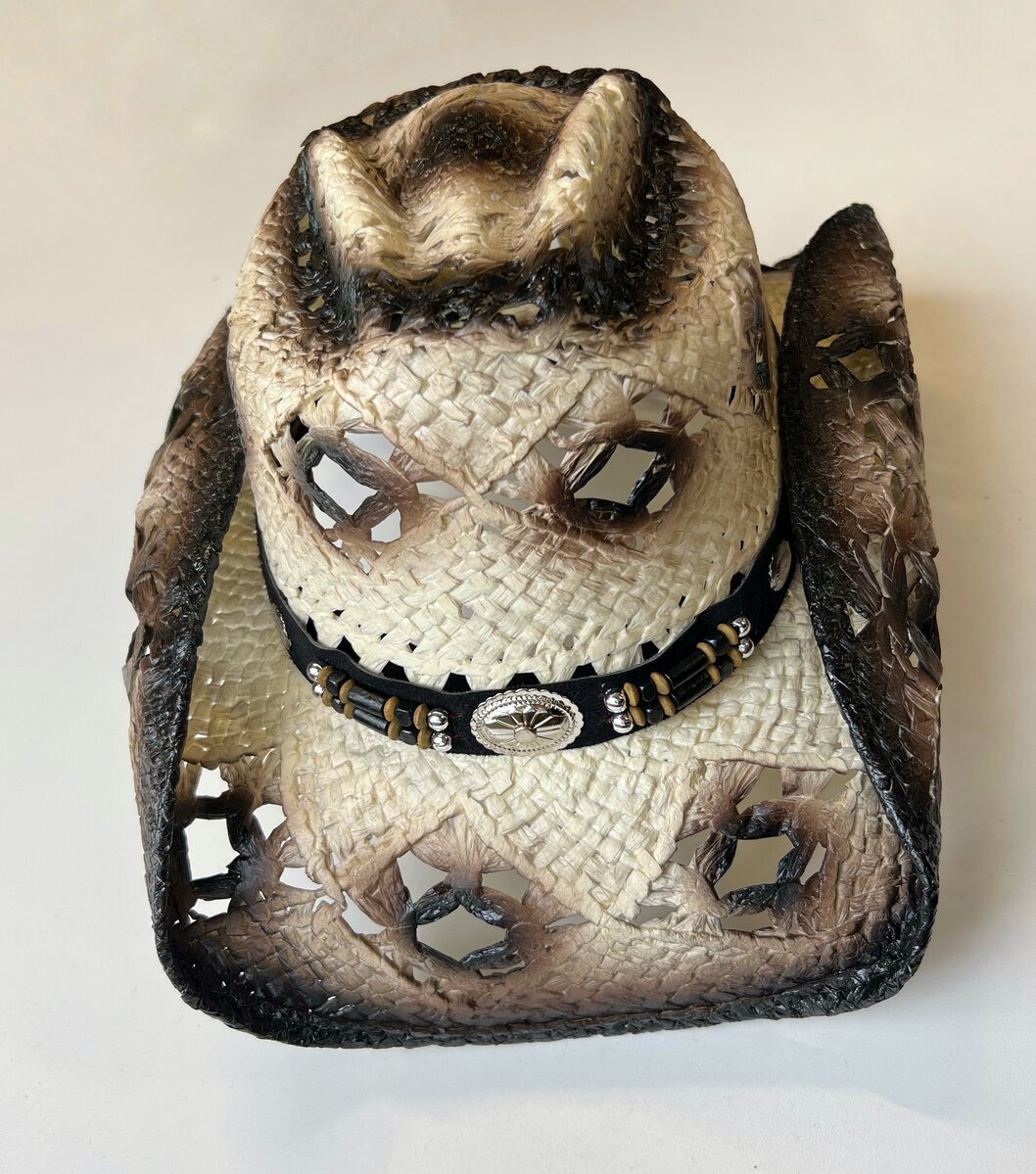 Olkihattu.Koot S/M (vastaa kokoa 55-57) ja L/XL (vastaa kokoa 58-60).
