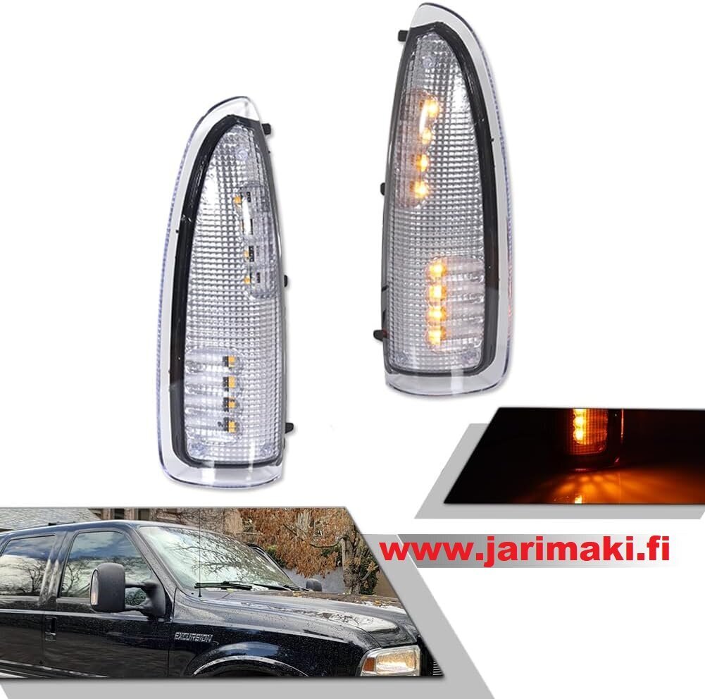 Pakkauksessa: 1 pari kirkas lasisia keltaista valoa näyttävää LED-sivupeilin suuntavilkkua.