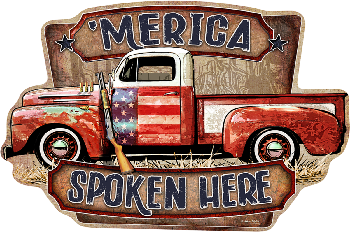 Muotoonleikattu kohokuvioinen peltikyltti.