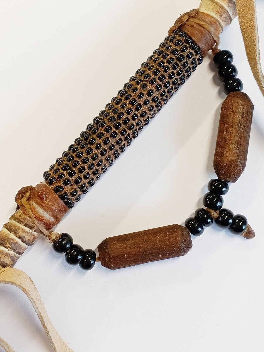Materiaalit: Puu, kivi, nahka, lasisia-, muovisia- ja puisia helmiä.