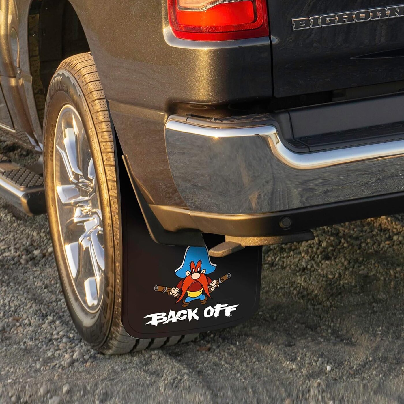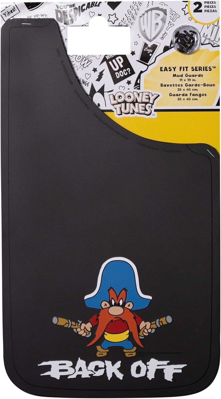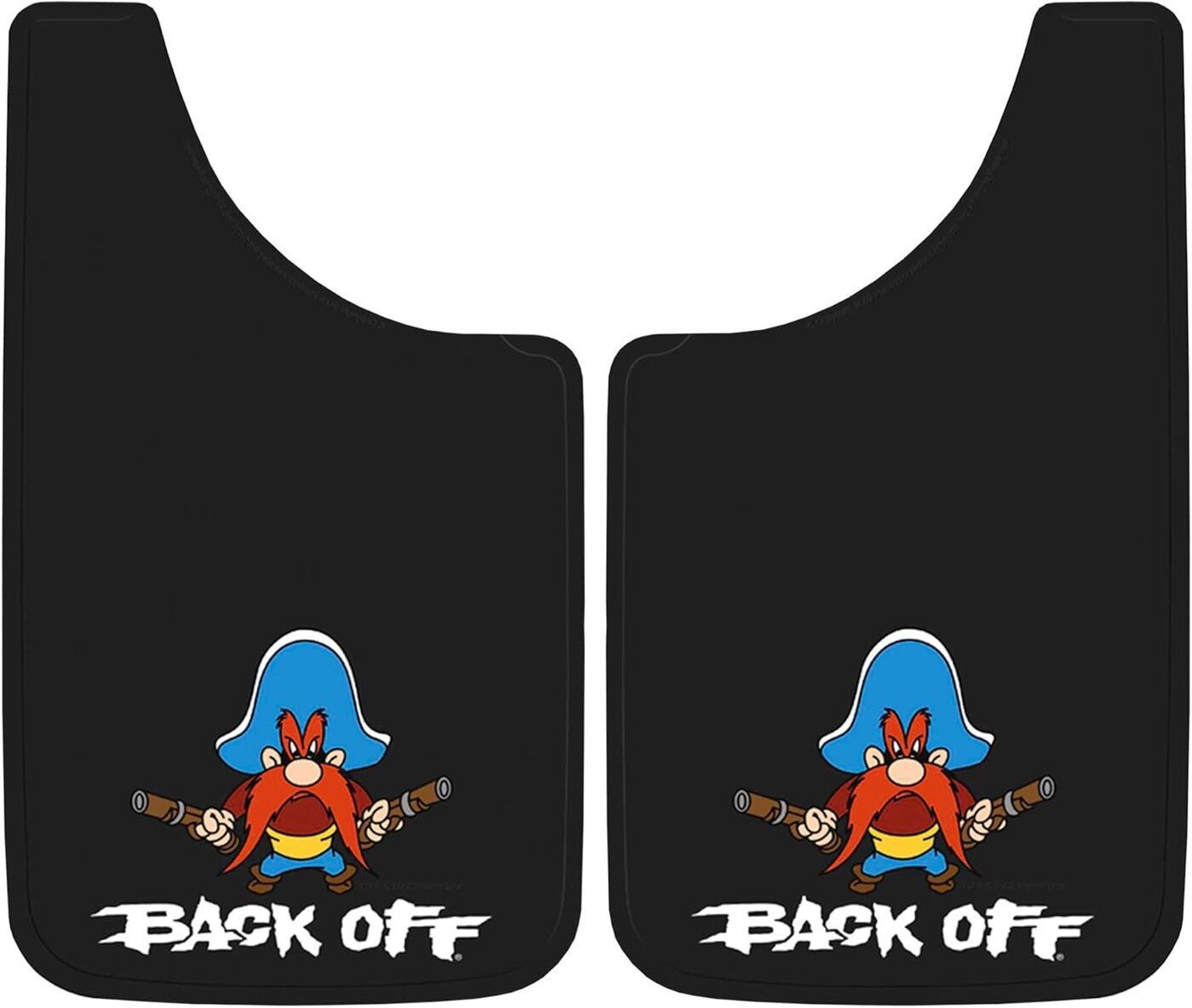 Looney Tunesin Yosemite Sam eli Viiksi-Vallu Back Off kuminen roiskeläppä, koko 28 x 48 cm. Myydään pareittain (hinta / pari).
