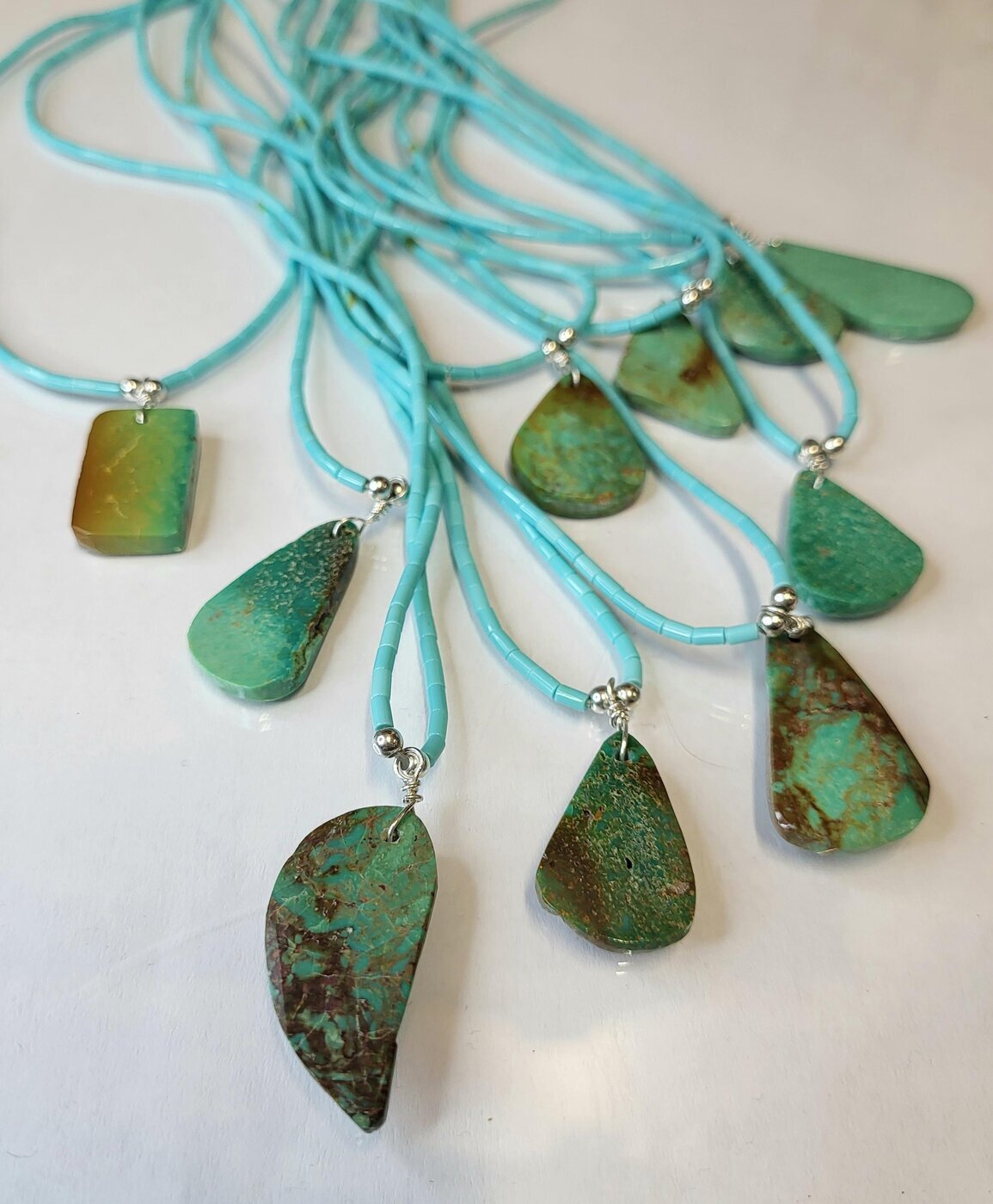 Upea, käsintehty kaulakoru, jossa aitoa Royston Turquoise -kiveä.
