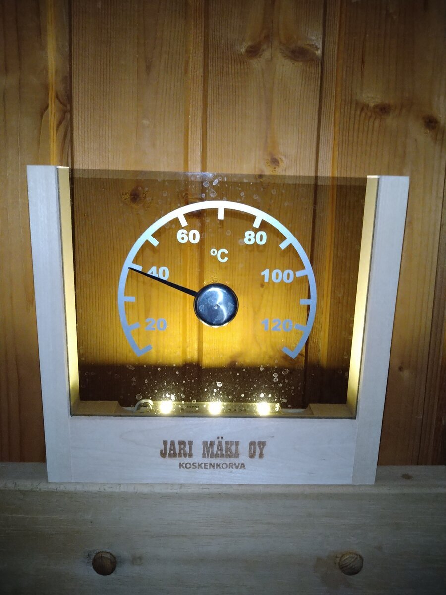 Jari Mäki Oy saunamittari kolmella led-valolla.