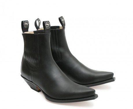 Sendran unisex nilkkuribootsit mustaa nahkaa. Molemmissa sivuissa venykkeet, ja edessä ja takana vetolenkit jotka helpottavat kenkien pukemista ja riisumista. Täydelliset kapeampi lahkeisten housujen kanssa.