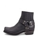 Sendran lyhytvartiset sileät bootsit mustaa nahkaa. Nilkan molemmilla sivuilla joustavat venykkeet sekä edessä ja takana vetolenkit, jotka helpottavat kenkien pukemista ja riisumista.