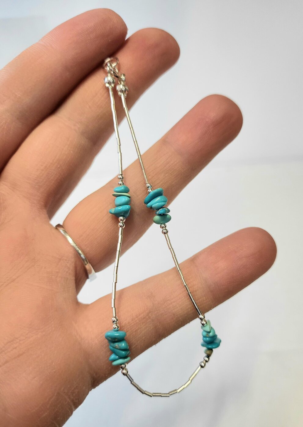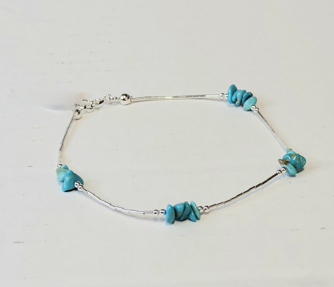 Tyylikäs käsikoru, jossa Sleeping Beauty Turquoise -kiveä. Metalliosat stearling hopeaa.