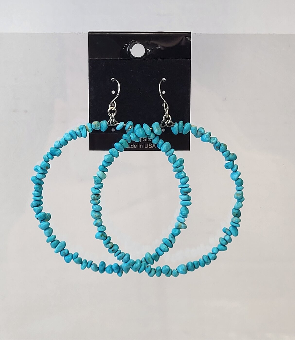 Näyttävät rengaskorvikset, joissa Sleeping Beauty Turquoise -kiveä. Metalliosat stearling hopeaa.