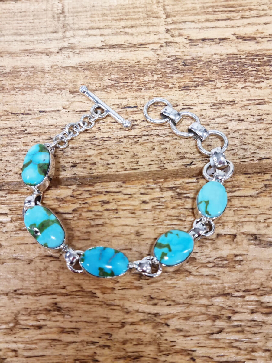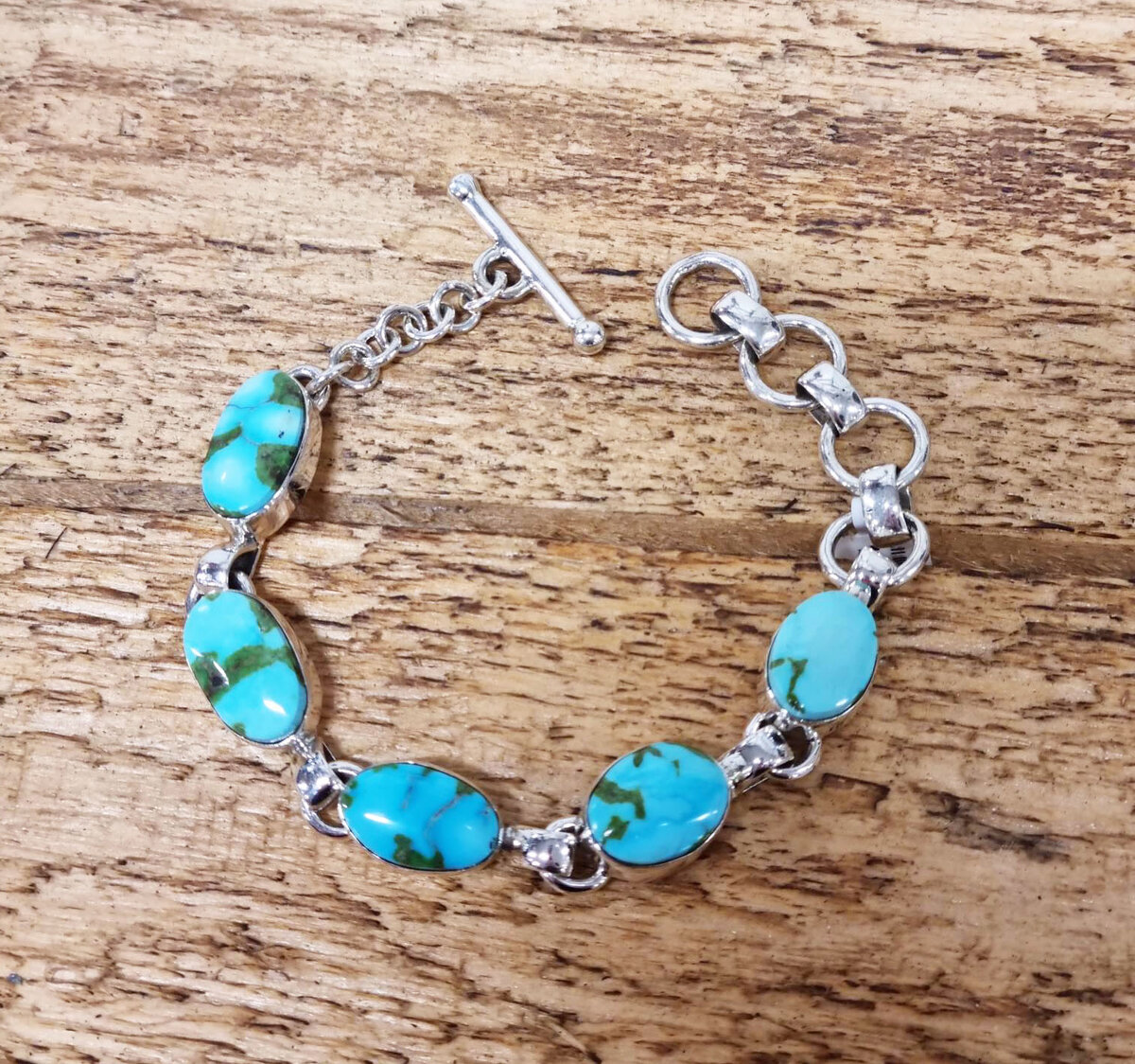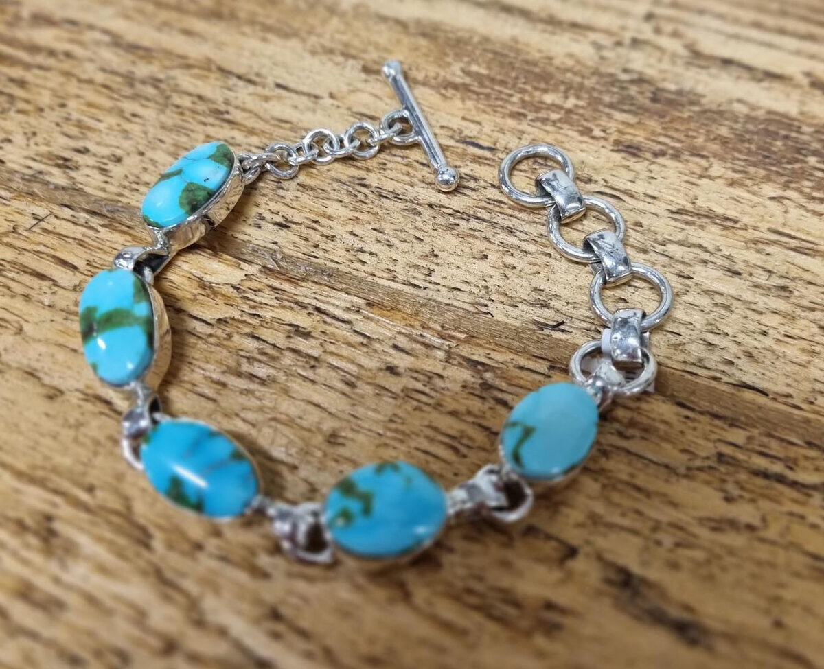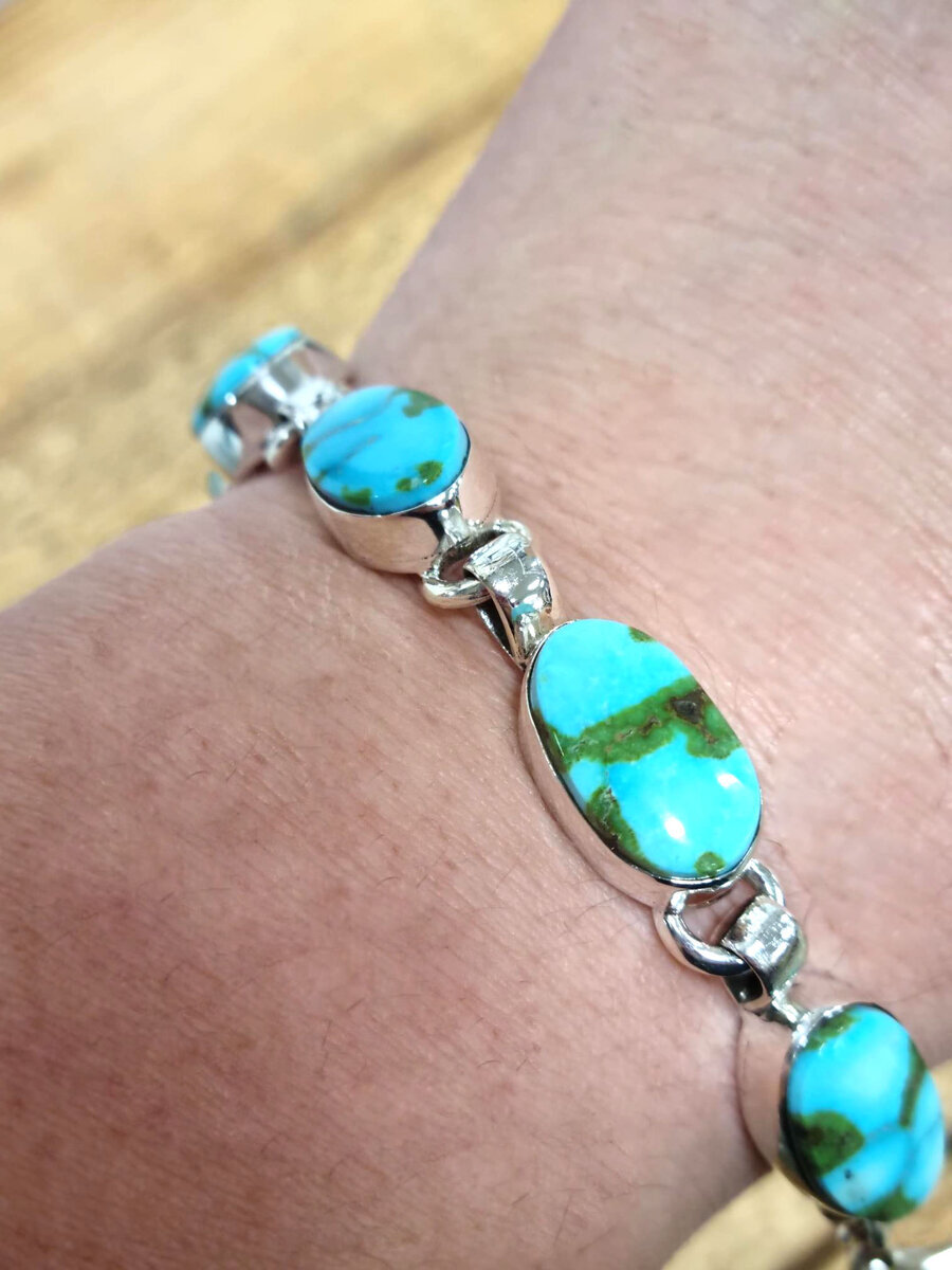 Upea, käsintehty rannekoru, jossa aitoa Sonoran Gold Turquoise -kiveä.