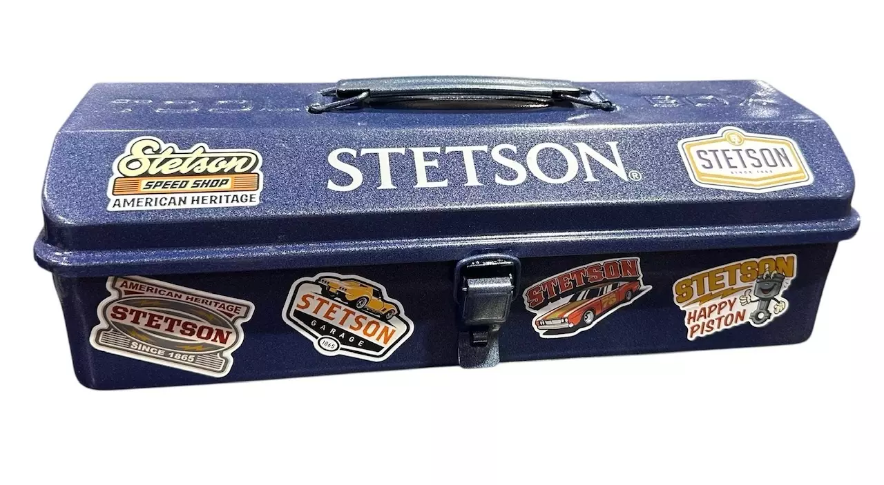 Stetsonin komea, tuunattava työkalulaatikko. Mukana tulee 6 kpl Stetson-tarroja koristeluun.