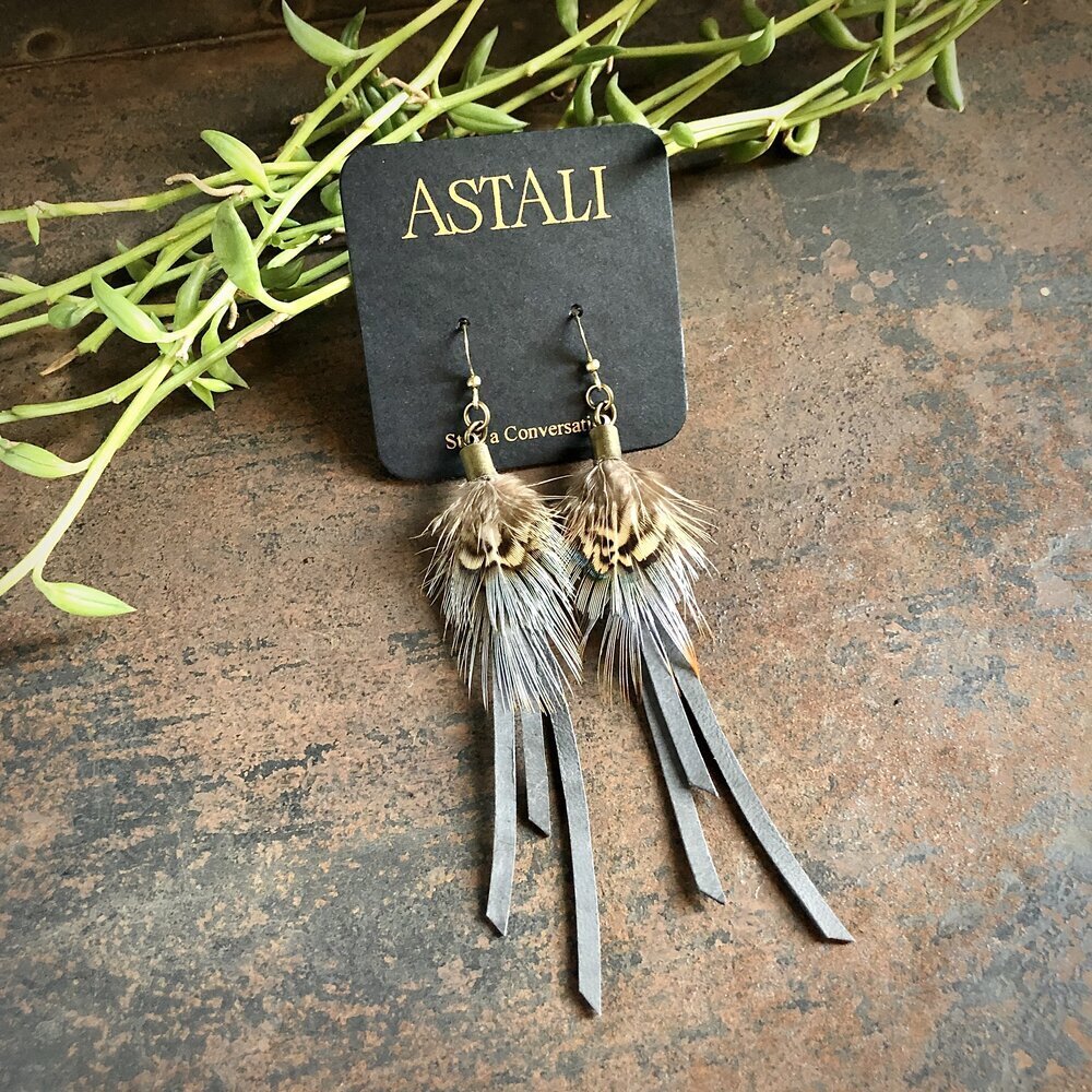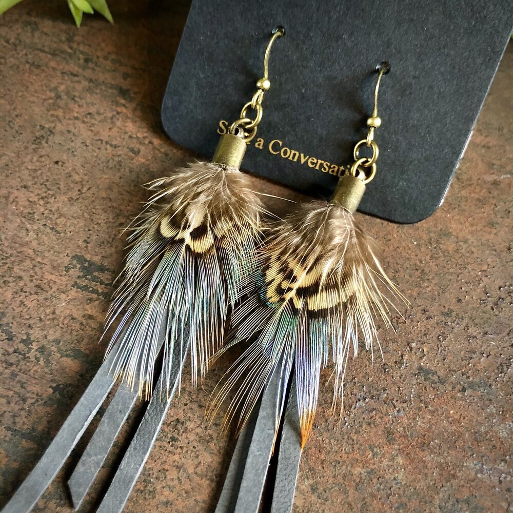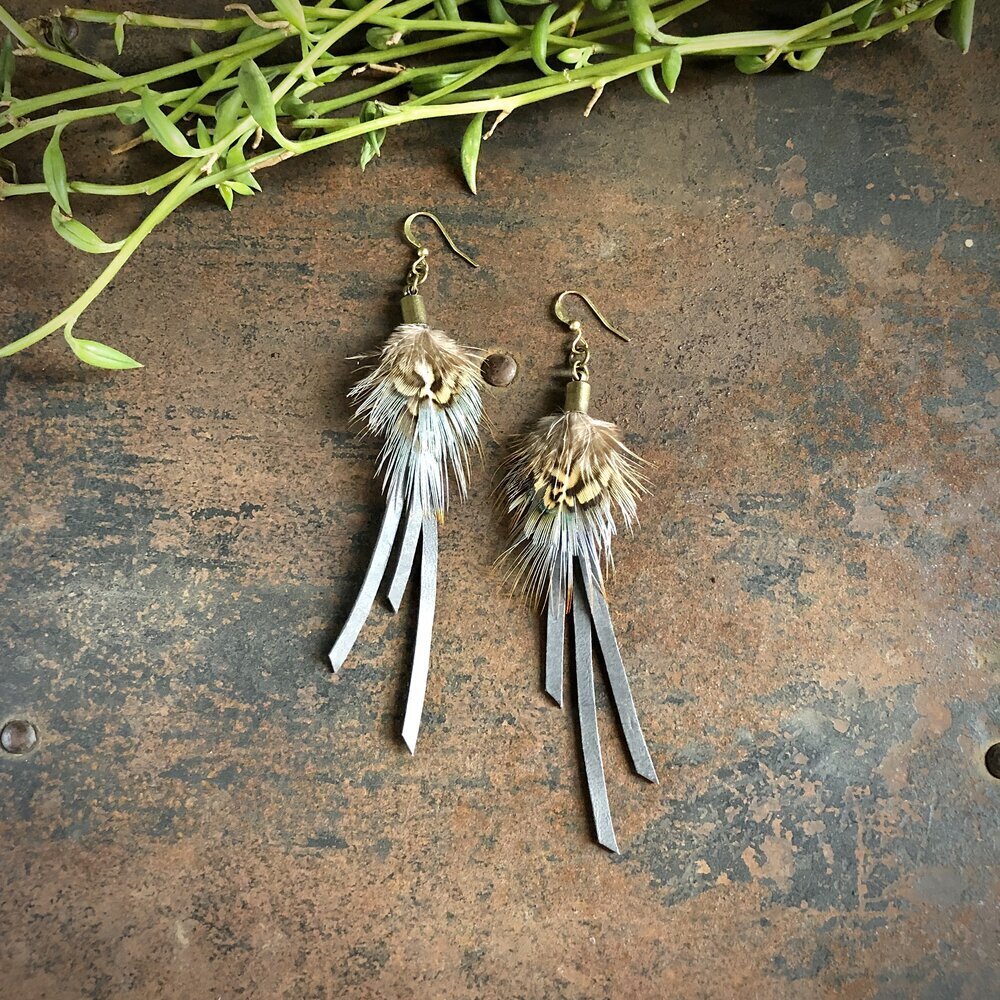 Nämä kauniit tupsukorvakorut on valmistettu käsin pehmeästä hiilen harmaasta peuran nahasta ja kauniista fasaanin sulista. Korvakorut ovat tarpeeksi kevyet vaikka joka päiväiseen käyttöön.