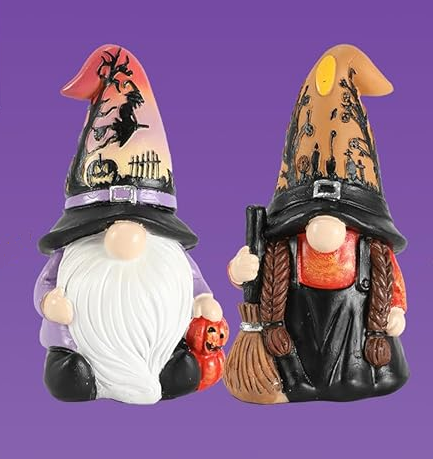 Valittavissa kaksi erilaista: tontulla kurpitsa tai luuta kädessä.