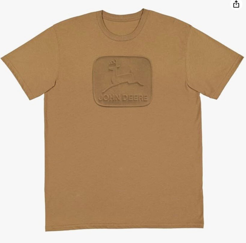 Ruskea perusmallinen T-paita, jossa rinnassa John Deere koholla oleva logo-painatus.